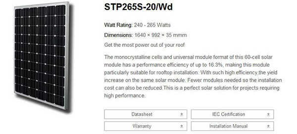 太陽(yáng)能光伏發(fā)電最基本原件是太陽(yáng)能電池片,選擇光伏組件至關(guān)重要!常州常能光伏所采用的組件為世界頂尖品質(zhì)組件提供商為合作伙伴,電池片光伏轉換效率高,單塊的組件功率更高,因此保證了光伏系統高效的發(fā)電效率。以下是幾種基本組件的參數介紹